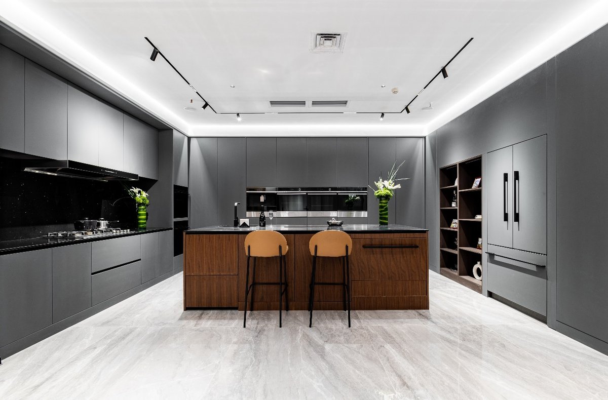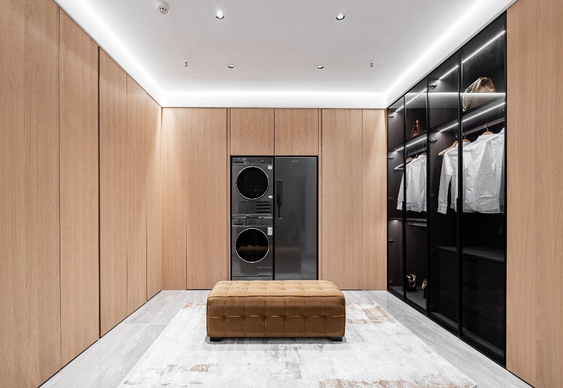 在奢适生活馆,社交厨房以灵活可定制的嵌入式电器与开放式岛台设计,呼应本地用户的生活习惯:多温区冰箱可分区存储鱼子酱与松茸等不同食材,保留食材本味;专业级烤箱可实现山珍的均匀煨烤,激发醇厚香气。而兼具料理台与社交功能的宽阔岛台,方便亲友在烹饪过程中的互动与交流——这种“烹饪与社交共生”的体验,让厨房从单一烹饪空间,转变为承载家庭欢聚的核心场域。