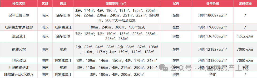 当前,浦东滨江主要有7个楼盘在售或待售,为不同需求的买家提供了多元选择。