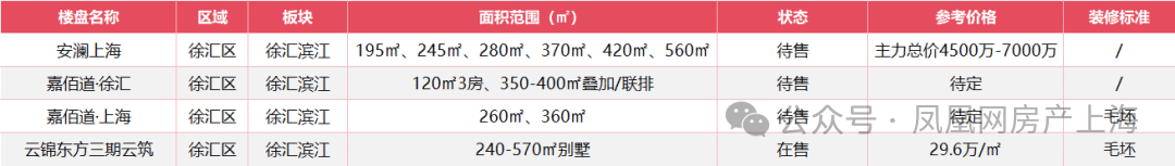 当前,徐汇滨江共有4盘可选,除了嘉佰道·徐汇会有小户型外,其余三个项目均为顶豪大平层,面向追求极致生活品质的高净值客群。