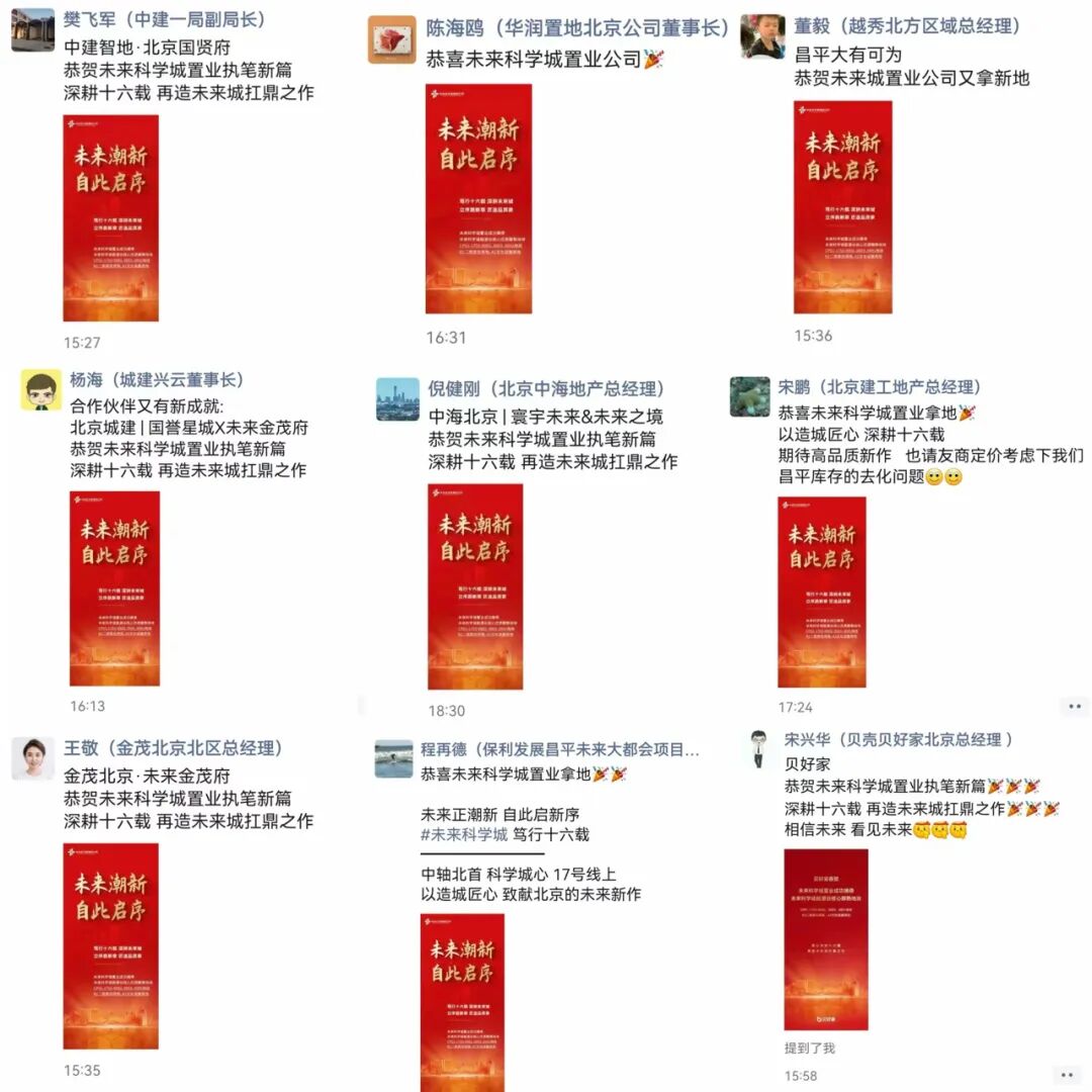 11月19日,她率领未来科学城置业以12.426亿元成功在昌平拿地后,一众地产大佬为之庆贺,纷纷在朋友圈转发了喜报。