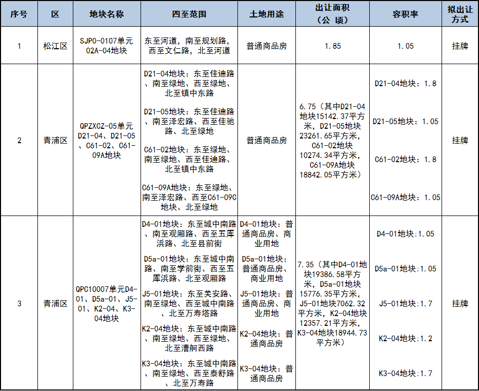 (原标题:上海发布第十一批次宅地出让公告,松江九亭、青浦赵巷等3幅地块入市)