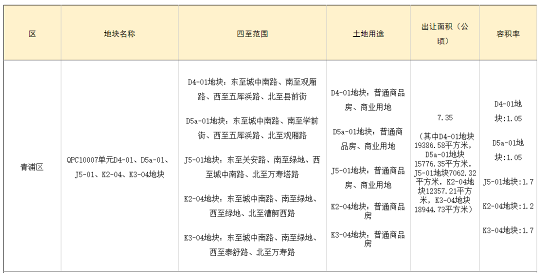 青浦区QPC10007单元D4-01、D5a-01、J5-01、K2-04、K3-04地块