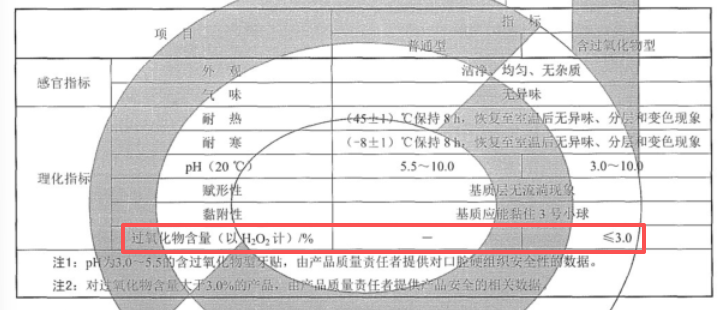 同时,《消费者报道》记者也查看了目前行业标准QB/T4857-2015《牙贴》,标准中明确要求过氧化物含量(以H₂O₂计)≤3.0%。