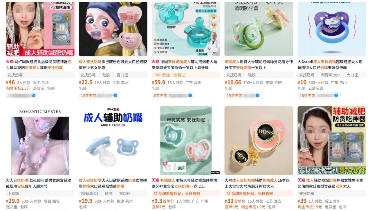 成人安抚奶嘴在电商平台热销