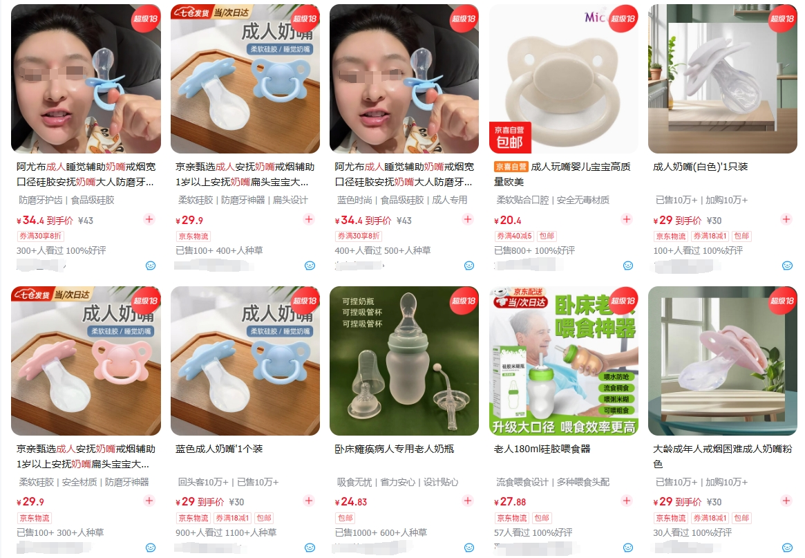 当电商平台的成人奶嘴销量突破10万件,当社交媒体成为大型种草现场,有人将成人奶嘴视为“救命神器”,也有人吐槽“这届年轻人终于疯了”。