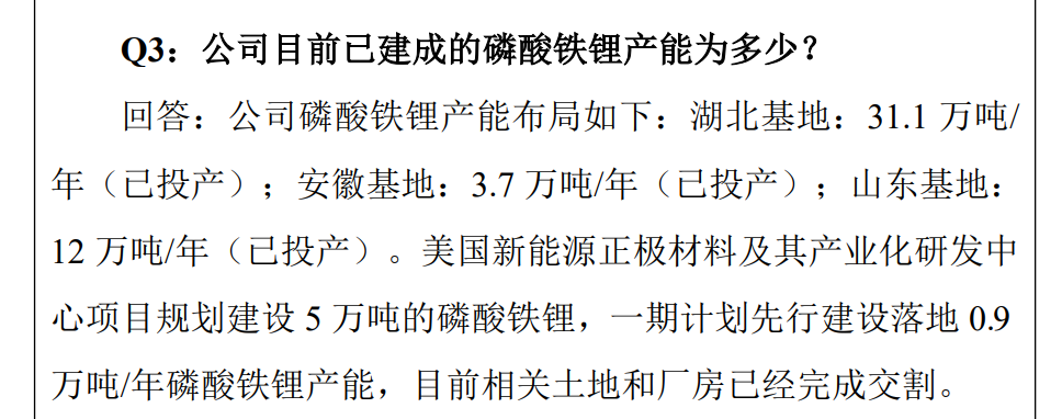 此外,不仅仅是江西升华,还有万润新能(688275.SH)、龙蟠科技(603906.SH、02465.HK)等上市公司的磷酸铁锂产能,也被宁德时代早早预定。