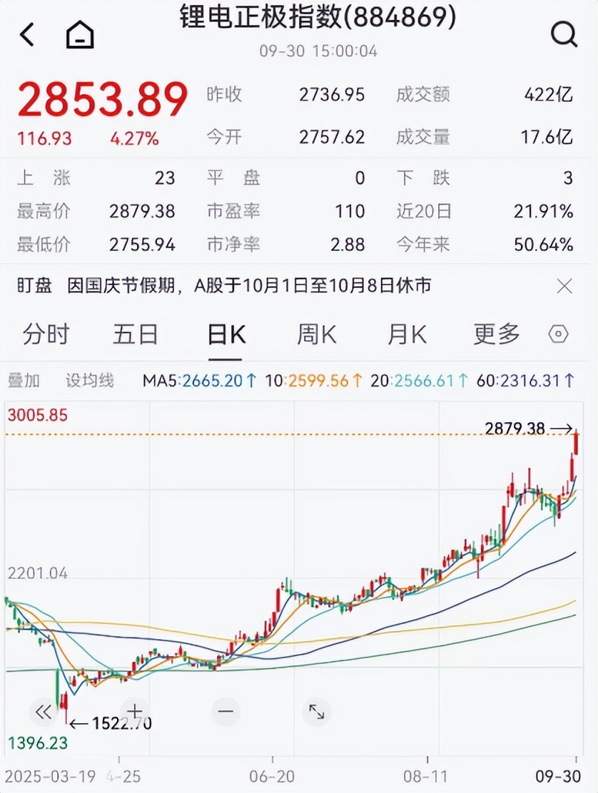 受该公告刺激,9月30日富临精工20厘米涨停,总市值来到380亿元,距离2021年的股价高点仅一步之遥,同时磷酸铁锂正极材料集体大涨,主升浪趋势明确。