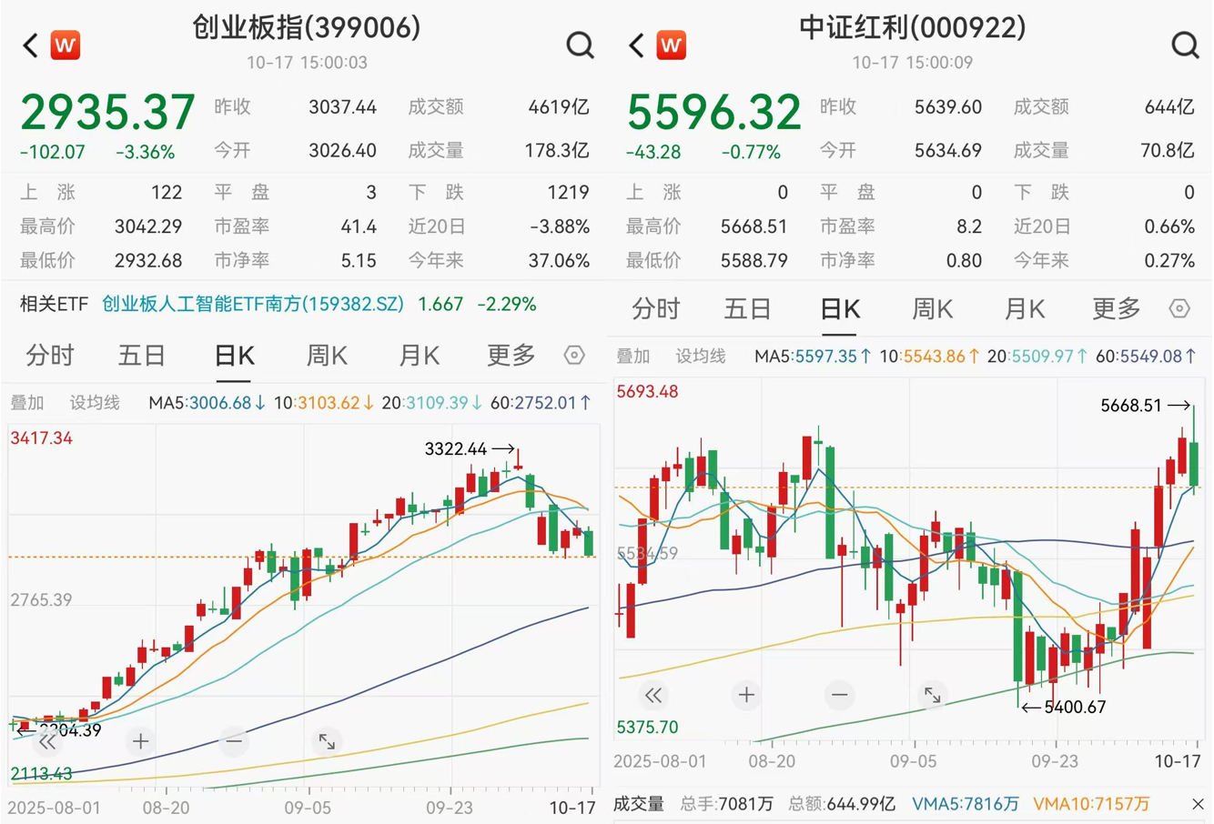 图片说明:10月份以来,创业板指数暴跌,中证红利指数逆势上涨,数据来源于Wind