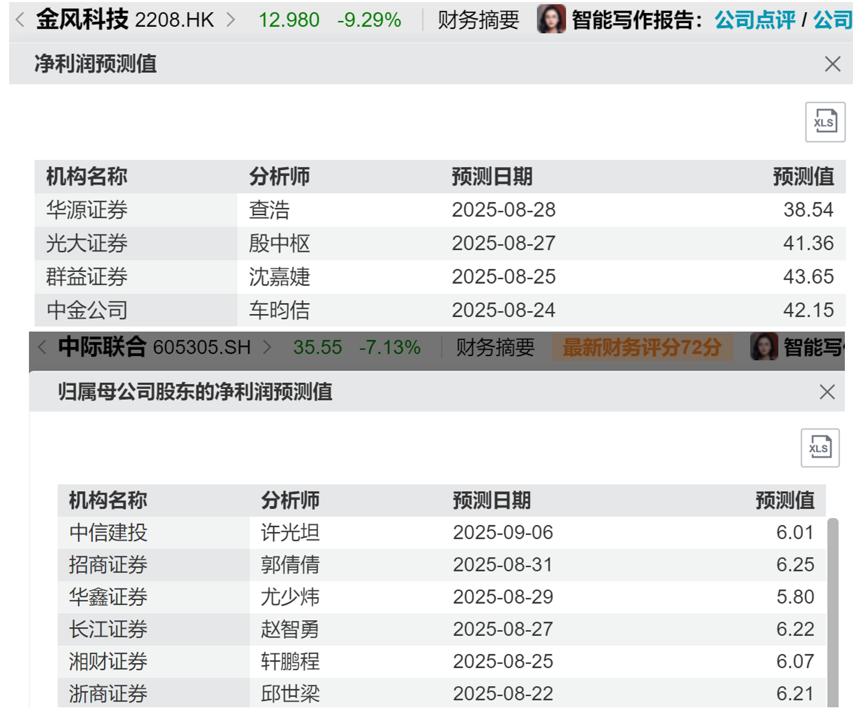 图片说明:卖方关于金风科技和中际联合的2026年业绩测算,数据来源于Wind