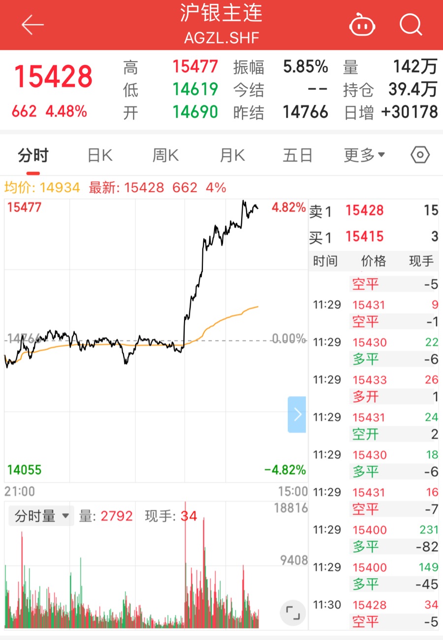 12月17日,国内外白银市场同步迎来历史性时刻。 在上海期货交易所,沪银期货主力合约盘中价格一度冲高至每千克15477元,涨幅超过4%,刷新了该合约上市以来的最高纪录。