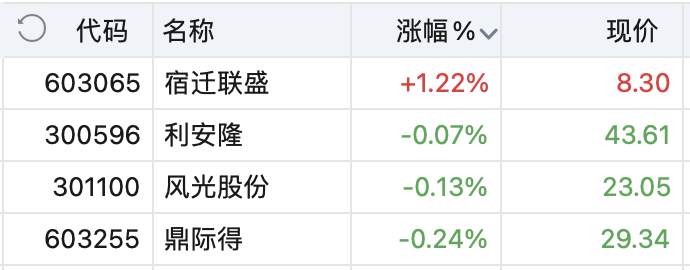 不过二级市场反应较为平淡,截至14:20,除宿迁联盛涨1.22%,利安隆、风光股份、鼎际得均出现小幅小跌。