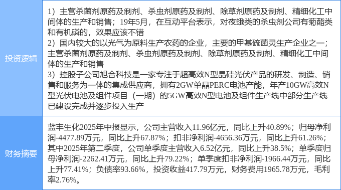 该股为农药,光伏,虫害防治概念热股,当日农药概念上涨1.2%,光伏概念上涨1.12%,虫害防治概念上涨0.83%。