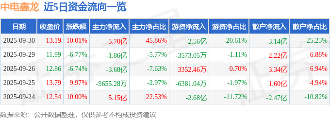 9月30日的资金流向数据方面,主力资金净流入5.7亿元,占总成交额45.86%,游资资金净流出2.56亿元,占总成交额20.61%,散户资金净流出3.14亿元,占总成交额25.25%。