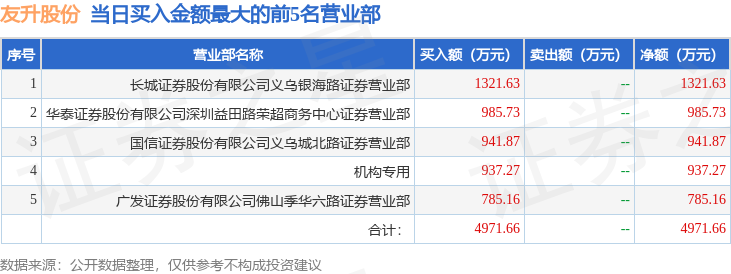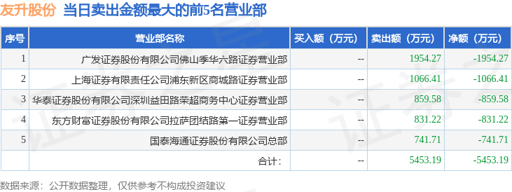 证券之星消息,沪深交易所2025年9月30日公布的交易公开信息显示,友升股份(603418)因有价格涨跌幅限制的日换手率达到20%的前五只证券登上龙虎榜。此次是近5个交易日内第1次上榜。
