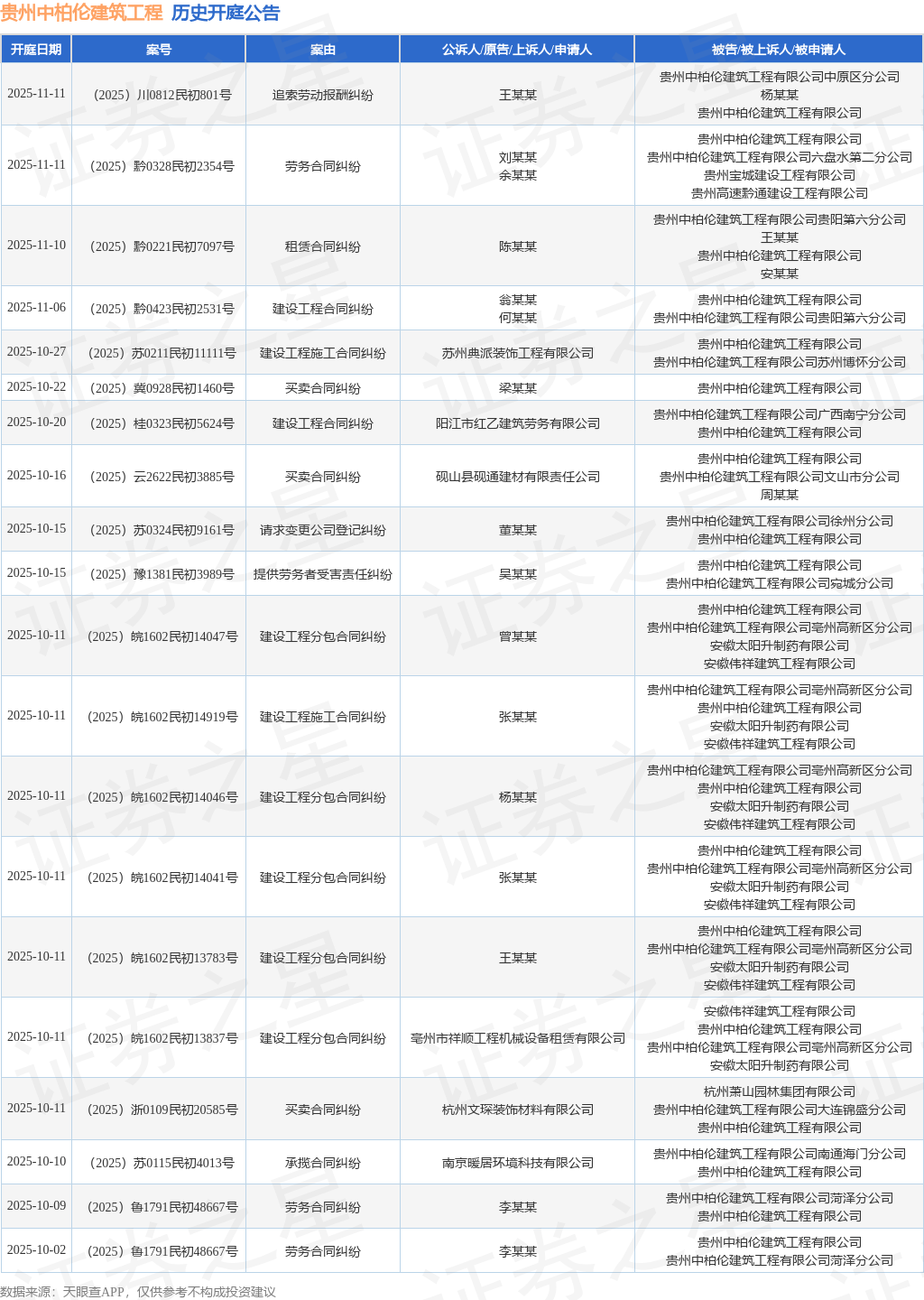 证券之星消息,根据天眼查APP显示,近日公布了一则贵州中柏伦建筑工程有限公司作为被告/被上诉人的开庭公告,详细内容如下: