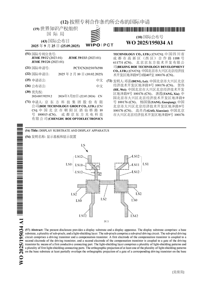 证券之星消息,根据企查查数据显示京东方A(000725)公布了一项国际专利申请,专利名为“显示基板和显示装置”,专利申请号为PCT/CN2025/076590,国际公布日为2025年9月25日。