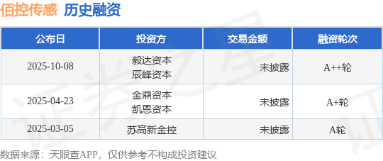 证券之星消息,根据天眼查APP于10月8日公布的信息整理,苏州佰控传感技术有限公司A++轮融资,融资额未披露,参与投资的机构包括毅达资本,辰峰资本。