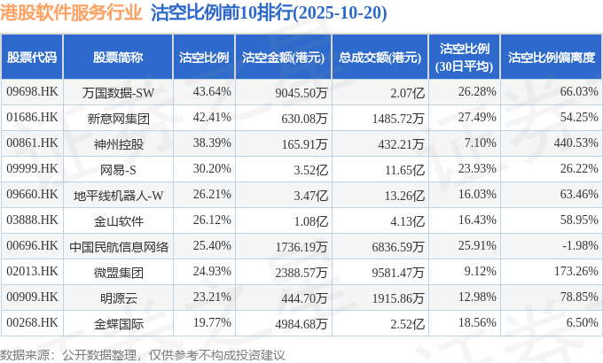 从沽空比例来看,万国数据-SW、新意网集团、神州控股沽空比例位居行业前三,分别为43.64%、42.41%、38.39%。