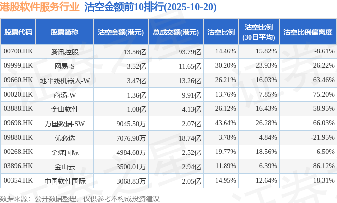 从沽空金额来看,腾讯控股、网易-S、地平线机器人-W沽空金额位居行业前三,分别为13.56亿港元、3.52亿港元、3.47亿港元。