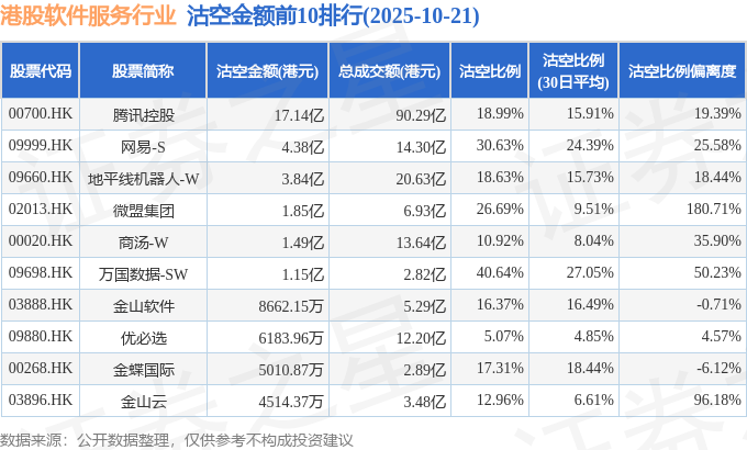 从沽空金额来看,腾讯控股、网易-S、地平线机器人-W沽空金额位居行业前三,分别为17.14亿港元、4.38亿港元、3.84亿港元。