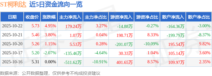 10月22日的资金流向数据方面,主力资金净流入179.24万元,占总成交额3.27%,游资资金净流出14.88万元,占总成交额0.27%,散户资金净流出164.36万元,占总成交额3.0%。