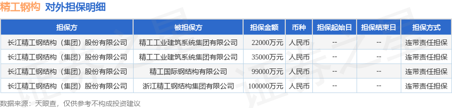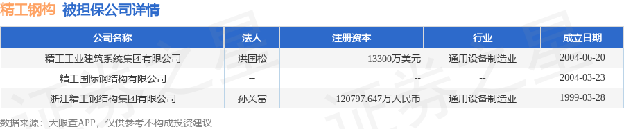 精工钢构10月23日披露4笔对外担保,被担保公司3家。对外担保明细如下表: