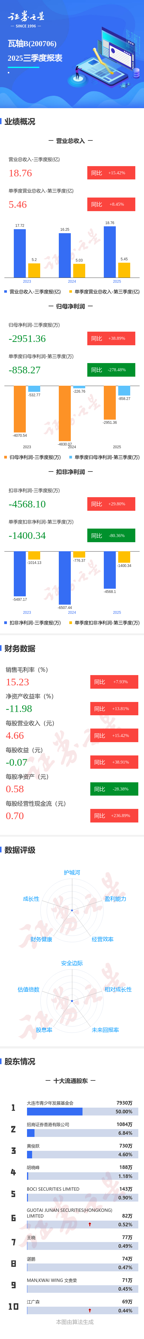 证券之星消息,瓦轴B2025年三季报显示,公司主营收入18.76亿元,同比上升15.43%;归母净利润-2951.36万元,同比上升38.9%;扣非净利润-4568.1万元,同比上升29.8%;其中2025年第三季度,公司单季度主营收入5.46亿元,同比上升8.46%;单季度归母净利润-858.27万元,同比下降278.48%;单季度扣非净利润-1400.34万元,同比下降80.37%;负债率91.9%,投资收益1369.11万元,财务费用921.71万元,毛利率15.23%。