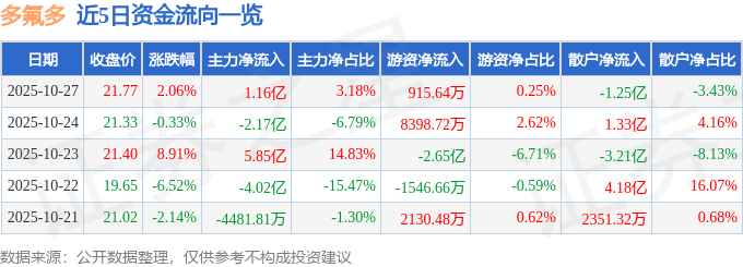 10月27日的资金流向数据方面,主力资金净流入1.16亿元,占总成交额3.18%,游资资金净流入915.64万元,占总成交额0.25%,散户资金净流出1.25亿元,占总成交额3.43%。