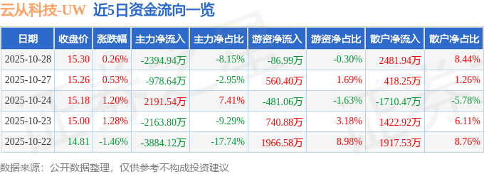 10月28日的资金流向数据方面,主力资金净流出2394.94万元,占总成交额8.15%,游资资金净流出86.99万元,占总成交额0.3%,散户资金净流入2481.94万元,占总成交额8.44%。