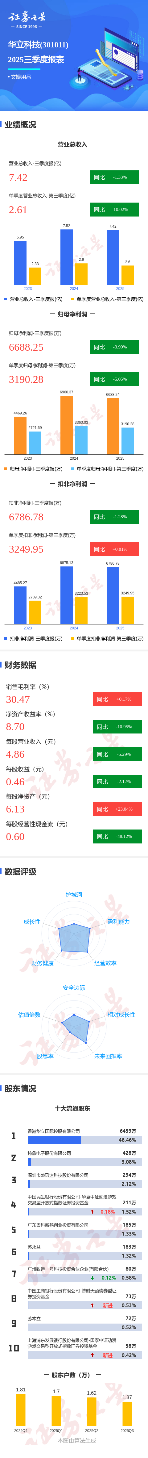 图解华立科技三季报:第三季度单季净利润同比下降5.05%
