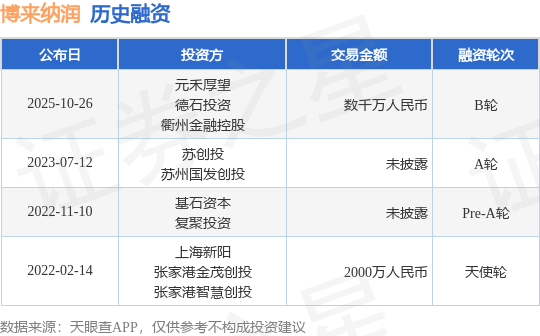 来源:证券之星投融事件
