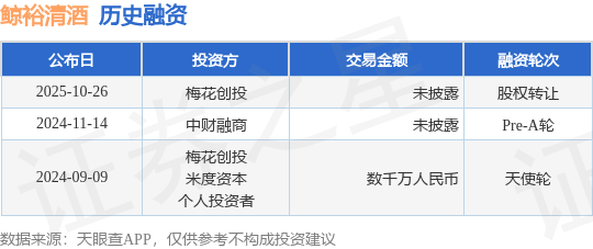 证券之星消息,根据天眼查APP于10月26日公布的信息整理,赣州轻云清酒业有限公司股权转让融资,交易额未披露。