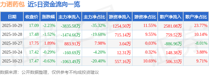 证券之星消息,截至2025年10月29日收盘,力诺药包(301188)报收于17.09元,下跌2.23%,换手率2.65%,成交量6.32万手,成交额1.09亿元。