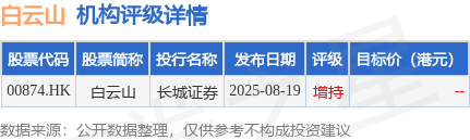 投行对该股的评级以增持为主,近90天内共有1家投行给出增持评级。长城证券最新一份研报给予白云山增持评级。