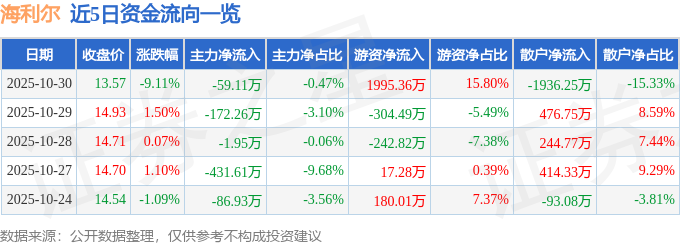 10月30日的资金流向数据方面,主力资金净流出59.11万元,占总成交额0.47%,游资资金净流入1995.36万元,占总成交额15.8%,散户资金净流出1936.25万元,占总成交额15.33%。