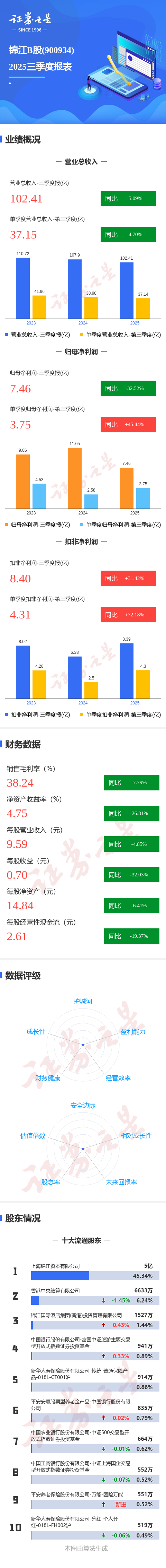 证券之星消息,锦江B股2025年三季报显示,前三季度公司主营收入102.41亿元,同比下降5.09%;归母净利润7.46亿元,同比下降32.52%;扣非净利润8.4亿元,同比上升31.43%;其中2025年第三季度,公司单季度主营收入37.15亿元,同比下降4.71%;单季度归母净利润3.75亿元,同比上升45.45%;单季度扣非净利润4.31亿元,同比上升72.18%;负债率64.76%,投资收益1.95亿元,财务费用4.8亿元,毛利率38.24%。