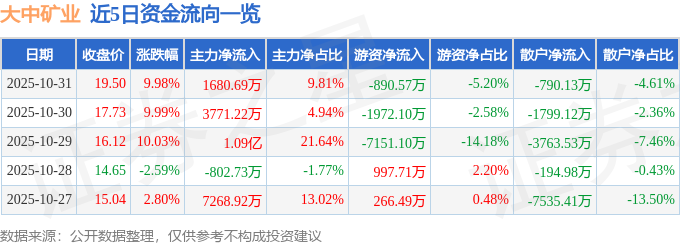 10月31日的资金流向数据方面,主力资金净流入1680.69万元,占总成交额9.81%,游资资金净流出890.57万元,占总成交额5.2%,散户资金净流出790.13万元,占总成交额4.61%。