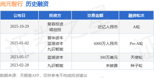 证券之星消息,根据天眼查APP于10月29日公布的信息整理,尚元智行(桐乡)科技有限公司A轮融资,融资额近亿人民币,参与投资的机构包括复容投资,锡创投。