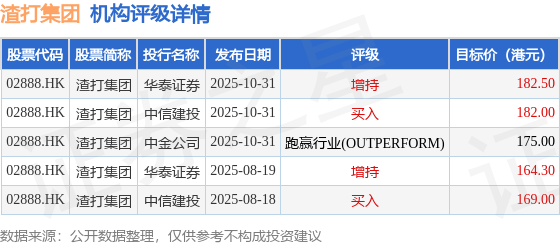 投行对该股的评级以增持为主,近90天内共有2家投行给出增持评级,近90天的目标均价为174.56港元。华泰证券最新一份研报给予渣打集团增持评级,目标价182.5港元。