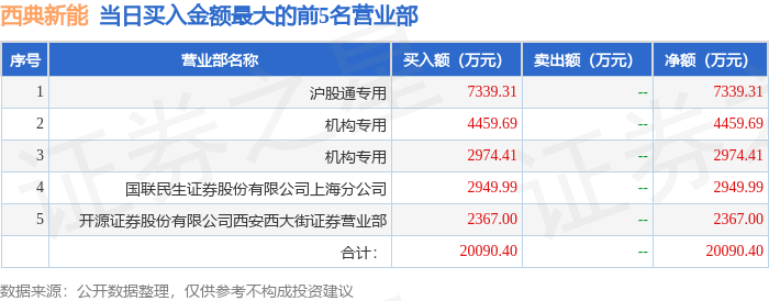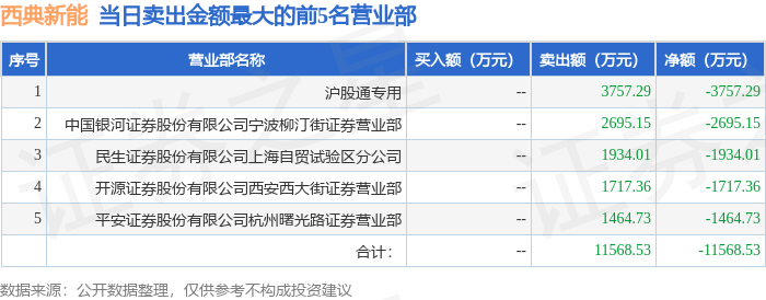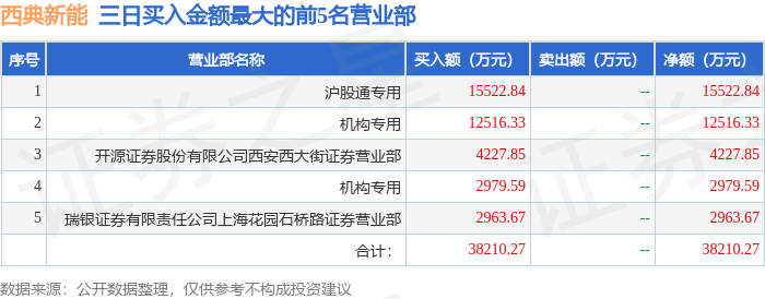证券之星消息,沪深交易所2025年11月5日公布的交易公开信息显示,西典新能(603312)因有价格涨跌幅限制的日价格振幅达到15%的前五只证券,非ST、*ST和S证券连续三个交易日内收盘价格涨幅偏离值累计达到20%的证券登上龙虎榜。此次是近5个交易日内第1次上榜。
