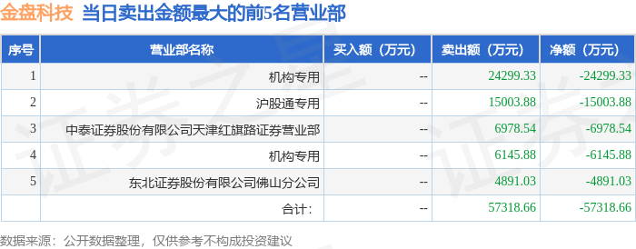 证券之星消息,沪深交易所2025年11月5日公布的交易公开信息显示,金盘科技(688676)因有价格涨跌幅限制的日收盘价格涨幅达到15%的前五只证券登上龙虎榜。此次是近5个交易日内第1次上榜。