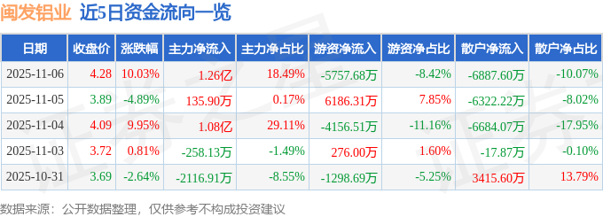 证券之星消息,闽发铝业11月6日涨停收盘,收盘价4.28元。该股于11点25分涨停,未打开涨停,截止收盘封单资金为6680.65万元,占其流通市值1.81%。