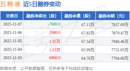 证券之星消息,11月7日,五 粮 液(000858)融资买入9843.23万元,融资偿还1.58亿元,融资净卖出5984.79万元,融资余额57.98亿元。