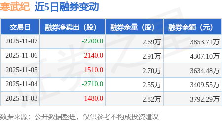 证券之星消息,11月7日,寒武纪(688256)融资买入12.64亿元,融资偿还17.58亿元,融资净卖出4.93亿元,融资余额151.92亿元,近20个交易日中有11个交易日出现融资净买入。
