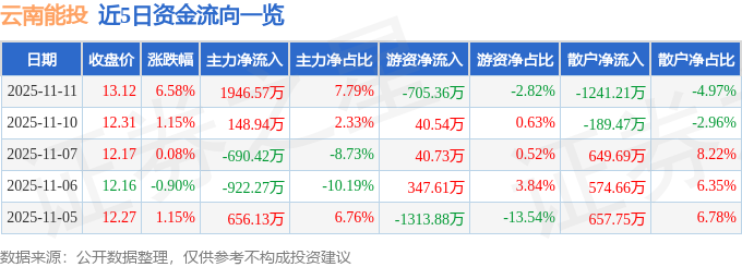 11月11日的资金流向数据方面,主力资金净流入1946.57万元,占总成交额7.79%,游资资金净流出705.36万元,占总成交额2.82%,散户资金净流出1241.21万元,占总成交额4.97%。