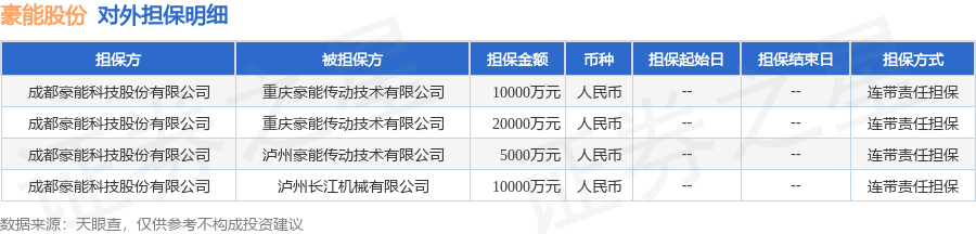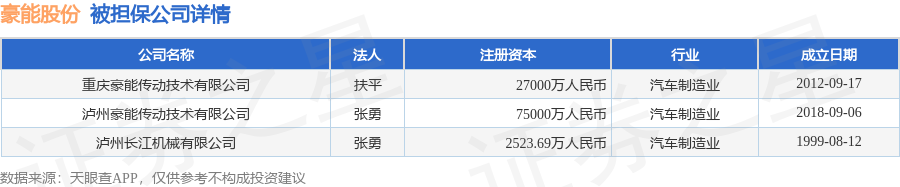 豪能股份11月11日披露4笔对外担保,被担保公司3家。对外担保明细如下表: