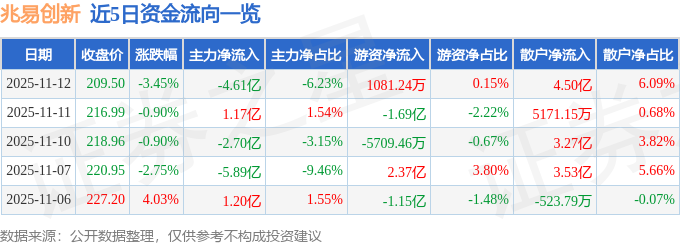 11月12日的资金流向数据方面,主力资金净流出4.61亿元,占总成交额6.23%,游资资金净流入1081.24万元,占总成交额0.15%,散户资金净流入4.5亿元,占总成交额6.09%。