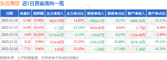 证券之星消息,东百集团11月14日涨停收盘,收盘价11.0元。该股于9点32分涨停,1次打开涨停,截止收盘封单资金为1.23亿元,占其流通市值1.29%。