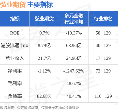 弘业期货港股市值8.79亿港元,在多元金融行业中排名第40。主要指标见下表: