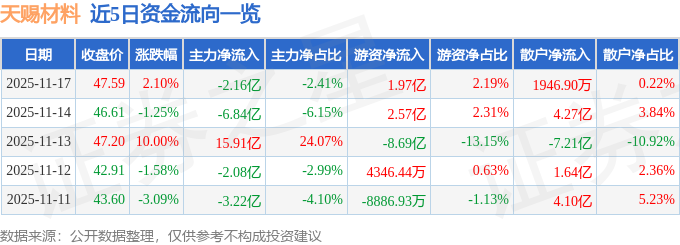 证券之星11月18日盘中消息,13点27分天赐材料(002709)触及跌停板。目前价格42.84,下跌9.98%。其所属行业电池目前下跌。领涨股为ST合纵。该股为特斯拉,PEEK材料,橡胶概念热股。